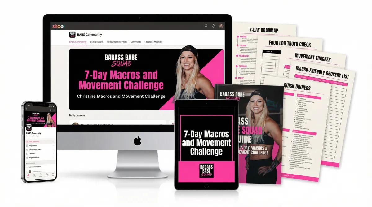 ✅ Lifetime access to the 7-Day Macros and Movement Challenge — start any time, come back whenever you need it